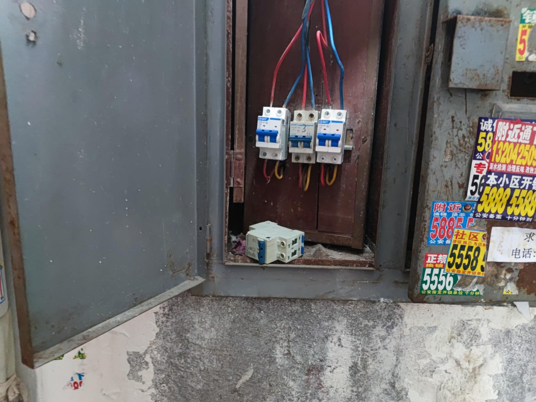 | 2026-04-16 | 住戶反映:1、電表箱子有糊味;2、空氣開關(guān)也糊了,住戶希望一個空氣開關(guān)管一戶;3、電表箱子里有灰,門也有點壞了,希望處理一下。 | 張渴新,王曉春,周波,曹慶 | ![]() |